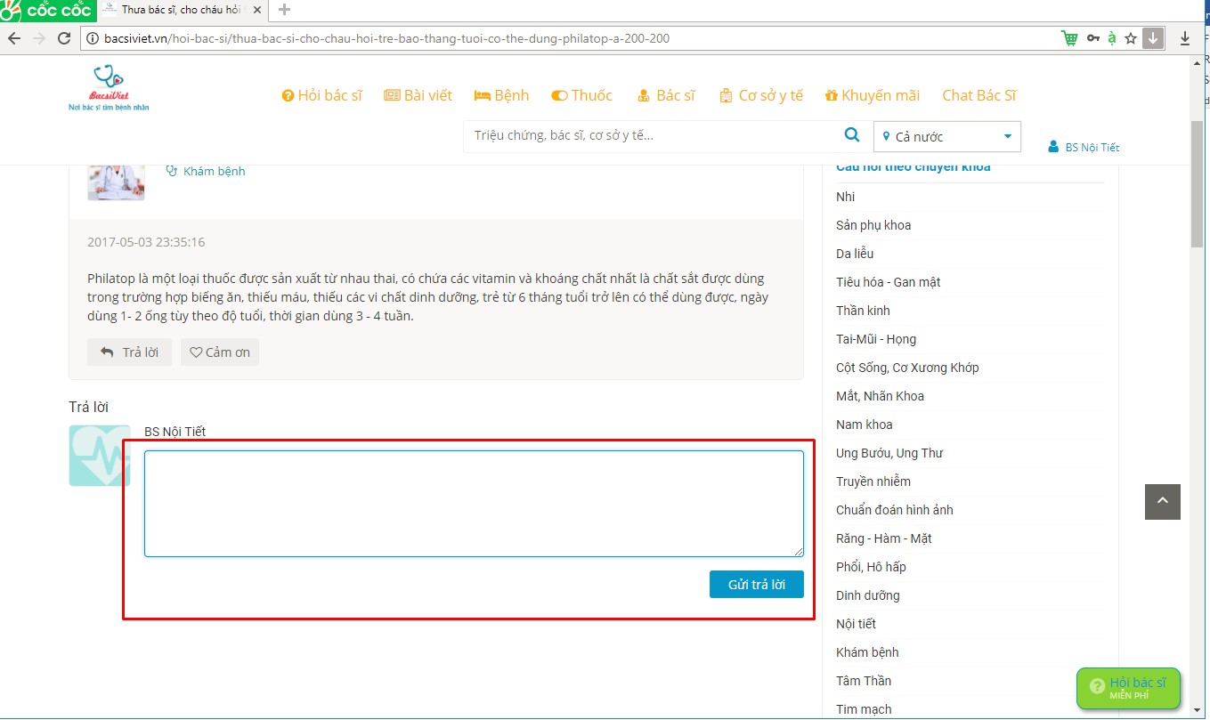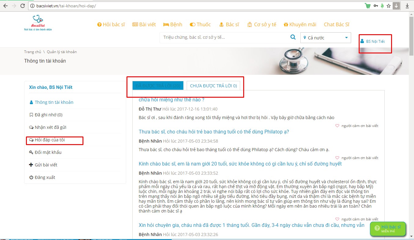 Login vào tài khoản của mình rồi vào menu Chat bác sĩ