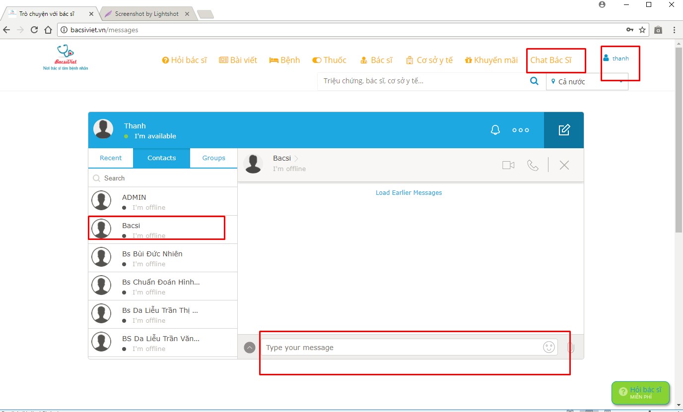 5. vào đây để xem bệnh nhân muốn chat trực tiếp với mình và coi lịch sử chat