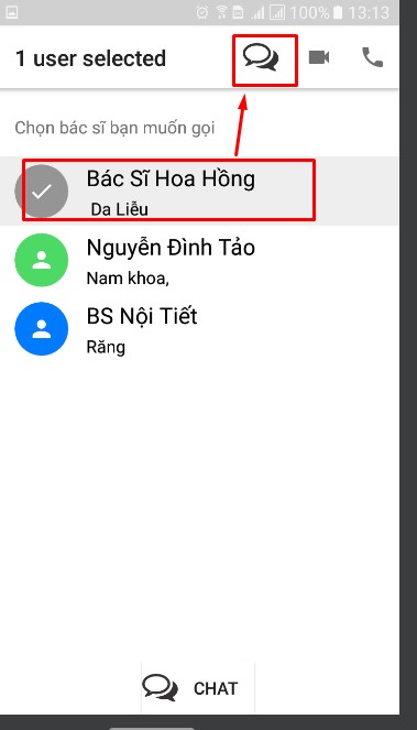 b. Cài vào điện thoại rồi rảnh thì login ,bệnh nhân sẽ thấy bác sĩ và chuyên khoa họ cần rồi hõe chọn bác sĩ cùng chuyền khoa muốn chat text hay voice/audio hay video webcam trực tiếp
